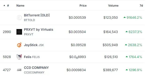 ๐ BitTorrent [OLD] [BTTOLD] +91515% ๐ PRXVT by Virtuals [PRXVT] +6182%