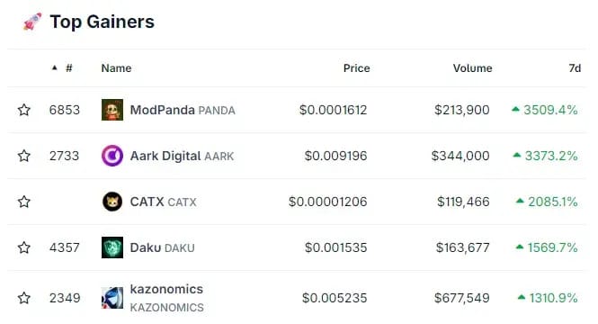 ⬆️Aark Digital (AARK) +3,542% ⬆️ModPanda (PANDA) +3,290%